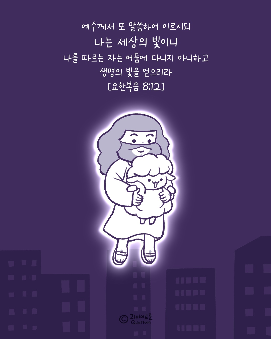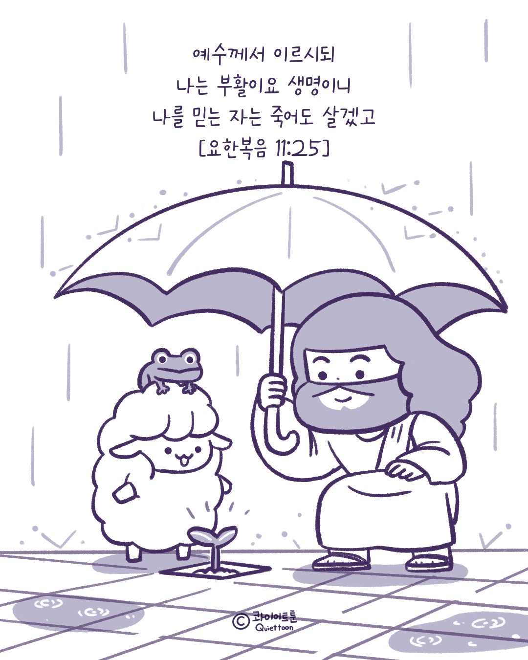 홍기두 작가 작품활동 응원하기!지난 20년간 갓피플 만화는 주보 사용을 무료로 제공해왔습니다. 이제는 작가들에게 작은 정성을 표현하면 어떨까요? 주보 1회 사용시 1,000원의 자발적 결제 후 이용해주세요주보사용 자발적 결제1,000원작가에게 커피 한잔선물하기좋아요아멘개척교회 돕기 2026-03-18 · 568 · · 그림묵상사순절콰이어트툰_홍기두더보기너를 지키시기를 원하며난 여호와로 즐거워하리 !흑암과 빛이 같음이니이다