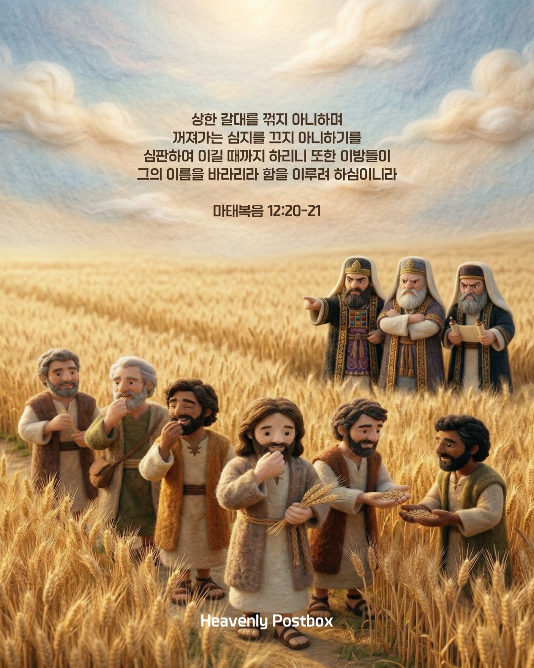 오늘 본문은 바리새인들이 예수님과 제자들을 매섭게 몰아세우는 두 가지 사건으로 시작됩니다. 안식일에 밀 이삭을 잘라 먹은 것과 손 마른 사람을 고쳐준 것을 두고, 그들은 '율법'이라는 잣대를 들이댑니다. 그들의 눈에 예수님과 제자들은 안식일을 범한 명백한 '불법자'였고, 정죄의 대상이었기 때문입니다.