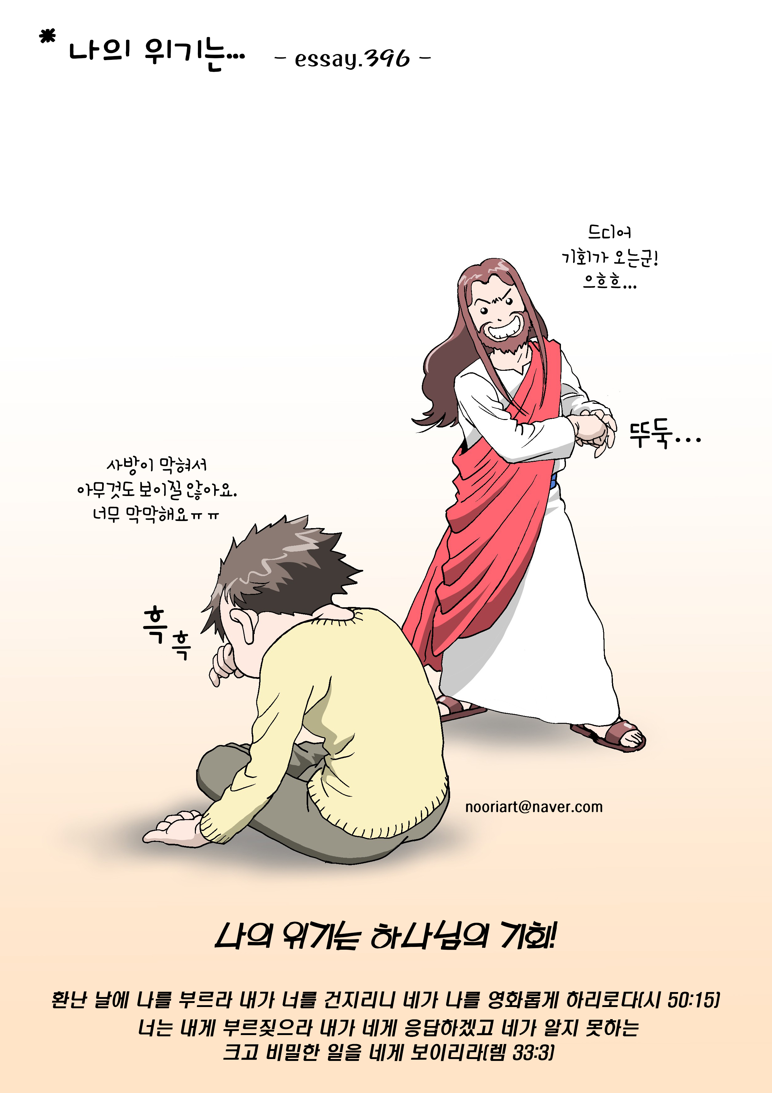 김영진 작가 작품활동 응원하기!지난 20년간 갓피플 만화는 주보 사용을 무료로 제공해왔습니다. 이제는 작가들에게 작은 정성을 표현하면 어떨까요? 주보 1회 사용시 1,000원의 자발적 결제 후 이용해주세요주보사용 자발적 결제1,000원작가에게 커피 한잔선물하기좋아요아멘개척교회 돕기 2026-03-25 · 457 · · 고난위기기회구원역전의명수하나님예수님주보그림묵상만화주보이미지그림묵상믿음생활 에세이_김영진더보기시험에 들지 않는 방법!경계해야 할 신앙먼저 된 자가 마땅히...