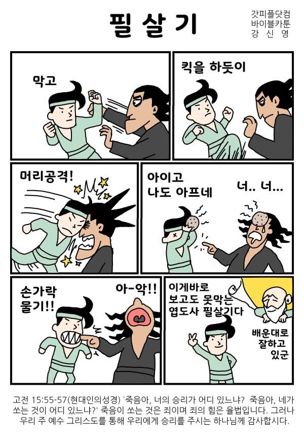 강신영 작가 작품활동 응원하기!지난 20년간 갓피플 만화는 주보 사용을 무료로 제공해왔습니다. 이제는 작가들에게 작은 정성을 표현하면 어떨까요? 주보 1회 사용시 1,000원의 자발적 결제 후 이용해주세요주보사용 자발적 결제1,000원작가에게 커피 한잔선물하기좋아요아멘개척교회 돕기 2026-03-26 · 263 · · 사밍쏘는것죄율법필살기승리배운대로부활바이블 카툰_강신영더보기더하는것어려서부터자장가