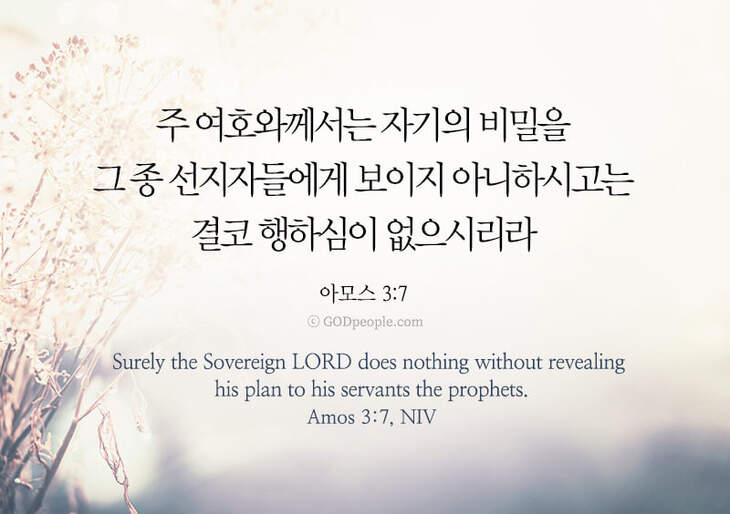 주 여호와께서는 자기의 비밀을 그 종 선지자들에게 보이지 아니하시고는 결코 행하심이 없으시리라 – 암3:7 Surely the Sovereign LORD does nothing without revealing his plan to his servants the prophets. – Amos 3:7, NIV ♥ 교도소 재소자에게 성경책을 보내드립니다. [플로잉전용상품] 재소자에게 성경책 보내기_우리말성경 단본(실버그린)우리말성경 단본 (무색인/무지퍼/페이퍼백/실버그린/DKV2406)두란노 편집부 [플로잉전용상품] 재소자에게 성경책 보내기_큰글로 읽는 우리말 비전성경 중단본(호박색)큰글로 읽는 우리말 비전성경 중단본(색인/무지퍼/PU/호박색/DKV2206)도서출판 두란노두란노 편집부 위 성경책을 구매 (플로잉 Flowing) 하시면 "프리즌 리바이벌 PRISON REVIVAL "을 통해서 국내 교정기관의 담장 안에서 지내시는 분들에게 전달됩니다.♥ 수용자 자녀에게 성경만화, 묵상365를 보내드립니다. [플로잉전용상품] 수용자 자녀에게 성경만화 보내기_만화 예수님의 생애 세트 (전3권)온 가족이 함께 보는 사복음서김동순 [플로잉전용상품] 수용자 자녀에게 성경만화 보내기_[개역개정판] 카툰성경 세트(완간/전3권)그린이 : 키이스 닐리, 데이비드 마일즈 [플로잉전용상품] 갓피플 통해 쌀 보내기_백미 (10kg)오픈스토리 [플로잉전용상품] 맛있는 반찬보내기_김치세트 (유기농백김치+겉절이)참식품주식회사 위 상품 구매 (플로잉 Flowing) 하시면 "세움"을 통해서 수용자(교도소 재소자) 자녀들에게 전달됩니다.+오늘의말씀으로 만들었어요♡ 오늘의말씀 아크릴 자석액자+말씀을 듣고 필사하세요♡ 개역개정 MP3 다운로드 | 태블릿으로 필사 | 종이노트로 필사 좋아요아멘개척교회 돕기 2021-10-29 · 3169 · 114 · 성경전도갓피플아모스갓피플오늘의말씀말씀카드좋은성경구절_암3:7아모스3장7절오늘의말씀더보기갓피플 오늘의말씀_에스겔36장36절갓피플 오늘의말씀_갈라디아서4장18절갓피플 오늘의말씀_누가복음6장23절