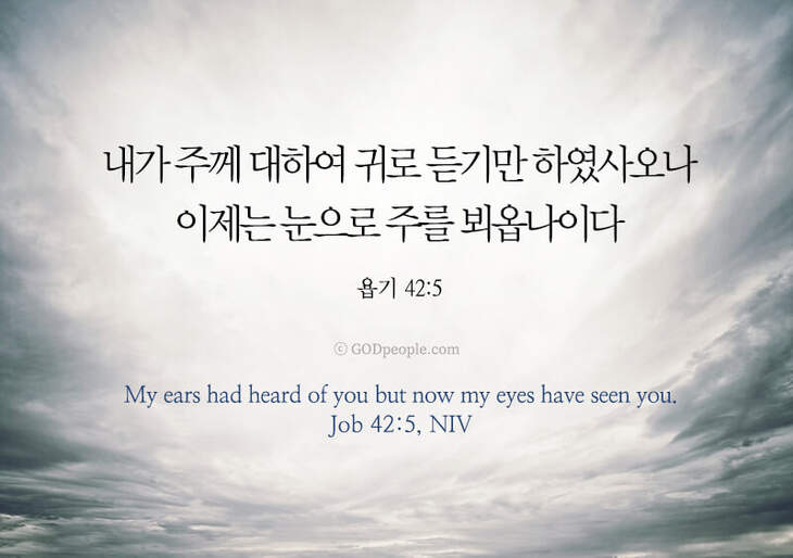 내가 주께 대하여 귀로 듣기만 하였사오나 이제는 눈으로 주를 뵈옵나이다 – 욥42:5 My ears had heard of you but now my eyes have seen you. – Job 42:5, NIV ♥ 교도소 재소자에게 성경책을 보내드립니다. [플로잉전용상품] 재소자에게 성경책 보내기_우리말성경 단본(실버그린)우리말성경 단본 (무색인/무지퍼/페이퍼백/실버그린/DKV2406)두란노 편집부 [플로잉전용상품] 재소자에게 성경책 보내기_큰글로 읽는 우리말 비전성경 중단본(호박색)큰글로 읽는 우리말 비전성경 중단본(색인/무지퍼/PU/호박색/DKV2206)도서출판 두란노두란노 편집부 위 성경책을 구매 (플로잉 Flowing) 하시면 "프리즌 리바이벌 PRISON REVIVAL "을 통해서 국내 교정기관의 담장 안에서 지내시는 분들에게 전달됩니다.♥ 수용자 자녀에게 성경만화, 묵상365를 보내드립니다. [플로잉전용상품] 수용자 자녀에게 성경만화 보내기_만화 예수님의 생애 세트 (전3권)온 가족이 함께 보는 사복음서김동순 [플로잉전용상품] 수용자 자녀에게 성경만화 보내기_[개역개정판] 카툰성경 세트(완간/전3권)그린이 : 키이스 닐리, 데이비드 마일즈 [플로잉전용상품] 갓피플 통해 쌀 보내기_백미 (10kg)오픈스토리 [플로잉전용상품] 맛있는 반찬보내기_김치세트 (유기농백김치+겉절이)참식품주식회사 위 상품 구매 (플로잉 Flowing) 하시면 "세움"을 통해서 수용자(교도소 재소자) 자녀들에게 전달됩니다.+오늘의말씀으로 만들었어요♡ 오늘의말씀 아크릴 자석액자+말씀을 듣고 필사하세요♡ 개역개정 MP3 다운로드 | 태블릿으로 필사 | 종이노트로 필사 좋아요아멘개척교회 돕기 2021-10-29 · 2517 · 179 · 성경갓피플갓피플오늘의말씀말씀카드욥기좋은성경구절_욥42:5욥기42장5절전오늘의말씀더보기갓피플 오늘의말씀_에스겔36장36절갓피플 오늘의말씀_갈라디아서4장18절갓피플 오늘의말씀_누가복음6장23절
