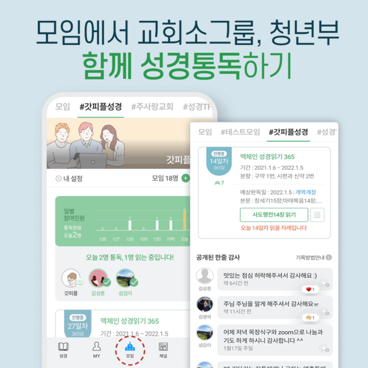 소그룹, 공동체에서 함께 통독하지 딱 좋은 갓피플성경 모임기능!