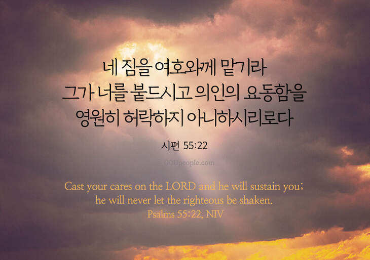 네 짐을 여호와께 맡기라 그가 너를 붙드시고 의인의 요동함을 영원히 허락하지 아니하시리로다 – 시55:22 Cast your cares on the LORD and he will sustain you; he will never let the righteous be shaken. – Psalms 55:22, NIV ♥ 교도소 재소자에게 성경책을 보내드립니다. [플로잉전용상품] 재소자에게 성경책 보내기_우리말성경 단본(실버그린)우리말성경 단본 (무색인/무지퍼/페이퍼백/실버그린/DKV2406)두란노 편집부 [플로잉전용상품] 재소자에게 성경책 보내기_큰글로 읽는 우리말 비전성경 중단본(호박색)큰글로 읽는 우리말 비전성경 중단본(색인/무지퍼/PU/호박색/DKV2206)도서출판 두란노두란노 편집부 위 성경책을 구매 (플로잉 Flowing) 하시면 "프리즌 리바이벌 PRISON REVIVAL "을 통해서 국내 교정기관의 담장 안에서 지내시는 분들에게 전달됩니다.♥ 수용자 자녀에게 성경만화, 묵상365를 보내드립니다. [플로잉전용상품] 수용자 자녀에게 성경만화 보내기_만화 예수님의 생애 세트 (전3권)온 가족이 함께 보는 사복음서김동순 [플로잉전용상품] 수용자 자녀에게 성경만화 보내기_[개역개정판] 카툰성경 세트(완간/전3권)그린이 : 키이스 닐리, 데이비드 마일즈 [플로잉전용상품] 갓피플 통해 쌀 보내기_백미 (10kg)오픈스토리 [플로잉전용상품] 맛있는 반찬보내기_김치세트 (유기농백김치+겉절이)참식품주식회사 위 상품 구매 (플로잉 Flowing) 하시면 "세움"을 통해서 수용자(교도소 재소자) 자녀들에게 전달됩니다.+오늘의말씀으로 만들었어요♡ 오늘의말씀 아크릴 자석액자+말씀을 듣고 필사하세요♡ 개역개정 MP3 다운로드 | 태블릿으로 필사 | 종이노트로 필사 좋아요아멘개척교회 돕기 2021-12-02 · 4720 · 179 · 성경전도갓피플시편갓피플오늘의말씀말씀카드좋은성경구절시편55편22절_시55:22오늘의말씀더보기갓피플 오늘의말씀_에스겔36장36절갓피플 오늘의말씀_갈라디아서4장18절갓피플 오늘의말씀_누가복음6장23절