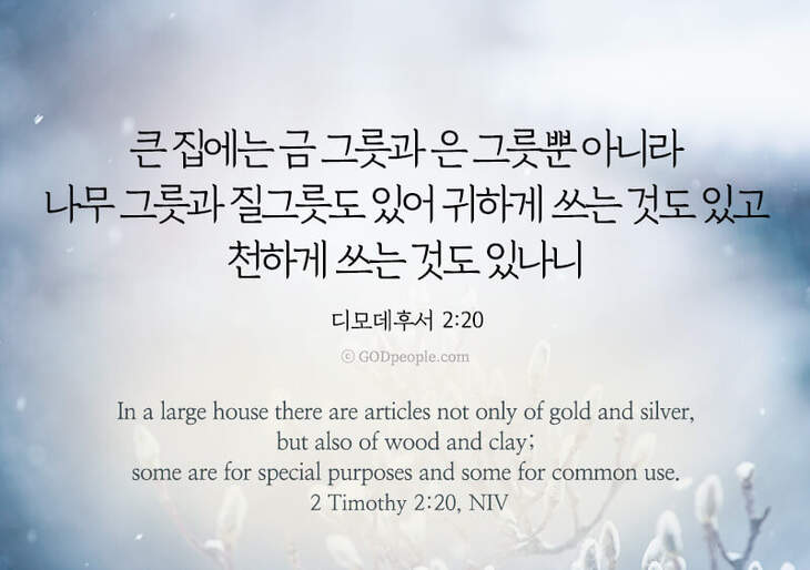 큰 집에는 금 그릇과 은 그릇뿐 아니라 나무 그릇과 질그릇도 있어 귀하게 쓰는 것도 있고 천하게 쓰는 것도 있나니 – 딤후2:20 In a large house there are articles not only of gold and silver, but also of wood and clay; some are for special purposes and some for common use. – 2 Timothy 2:20, NIV ♥ 교도소 재소자에게 성경책을 보내드립니다. [플로잉전용상품] 재소자에게 성경책 보내기_우리말성경 단본(실버그린)우리말성경 단본 (무색인/무지퍼/페이퍼백/실버그린/DKV2406)두란노 편집부 [플로잉전용상품] 재소자에게 성경책 보내기_큰글로 읽는 우리말 비전성경 중단본(호박색)큰글로 읽는 우리말 비전성경 중단본(색인/무지퍼/PU/호박색/DKV2206)도서출판 두란노두란노 편집부 위 성경책을 구매 (플로잉 Flowing) 하시면 "프리즌 리바이벌 PRISON REVIVAL "을 통해서 국내 교정기관의 담장 안에서 지내시는 분들에게 전달됩니다.♥ 수용자 자녀에게 성경만화, 묵상365를 보내드립니다. [플로잉전용상품] 수용자 자녀에게 성경만화 보내기_만화 예수님의 생애 세트 (전3권)온 가족이 함께 보는 사복음서김동순 [플로잉전용상품] 수용자 자녀에게 성경만화 보내기_[개역개정판] 카툰성경 세트(완간/전3권)그린이 : 키이스 닐리, 데이비드 마일즈 [플로잉전용상품] 갓피플 통해 쌀 보내기_백미 (10kg)오픈스토리 [플로잉전용상품] 맛있는 반찬보내기_김치세트 (유기농백김치+겉절이)참식품주식회사 위 상품 구매 (플로잉 Flowing) 하시면 "세움"을 통해서 수용자(교도소 재소자) 자녀들에게 전달됩니다.+오늘의말씀으로 만들었어요♡ 오늘의말씀 아크릴 자석액자+말씀을 듣고 필사하세요♡ 개역개정 MP3 다운로드 | 태블릿으로 필사 | 종이노트로 필사 좋아요아멘개척교회 돕기 2021-12-10 · 3379 · 133 · 성경전도갓피플갓피플오늘의말씀말씀카드디모데후서좋은성경구절_딤후2:20디모데후서2장20절오늘의말씀더보기갓피플 오늘의말씀_에스겔36장36절갓피플 오늘의말씀_갈라디아서4장18절갓피플 오늘의말씀_누가복음6장23절