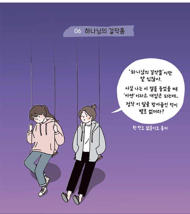 다른 사람이 날 사랑해주지 않는다고 말하는 이 시대에 내가 하나님을 믿을 수 있어 다행이다.