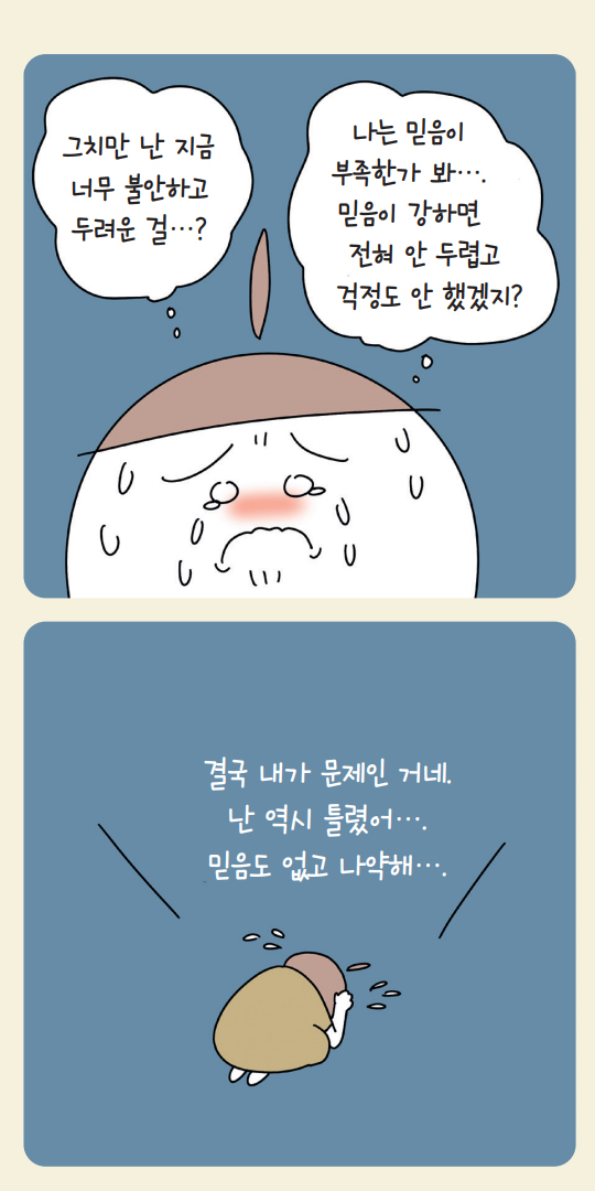 두려움도, 근심도 걱정도 없는 사람은 아마 없을거에요. 하지만 그 감정을 어떻게 다룰 수 있는지에 따라 달라지는 것 같아요. 두려움과 근심의 감정이 나를 힘들게 할 때 믿음 없음을 정죄하는 것이 아니라 주께 이야기 할 때 주님은 들어주시고 나에게 주님이 필요한 것을 알고 회복케 하실 수 있어요.