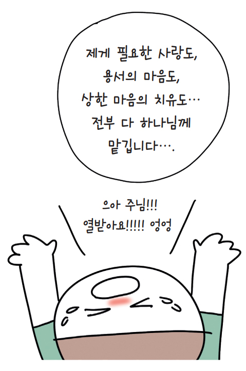 저를 위해 말씀해주신 그 용서를, 하나님이 이뤄주세요!!!” 기도하며 진짜 온갖 유치한 말로 하나님께 내 안에 분노를 쏟아냈다.