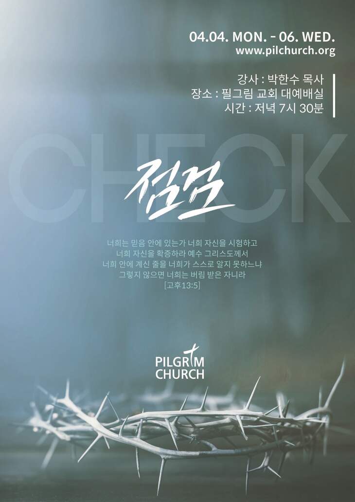 2022년 4월 4일부터 6일까지 제자광성교회 박한수 목사님을 모시고 “점검” 이라는 주제로 집회를 하려고 합니다.