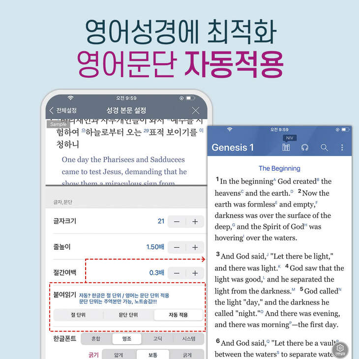 ?영어성경 읽기에 최적화된 문단기능을 이용해보세요.