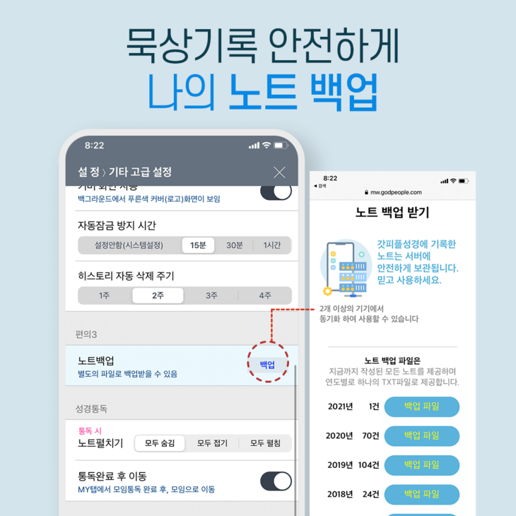 내 기록이 갓피플서버에 안전하게 보관되며,