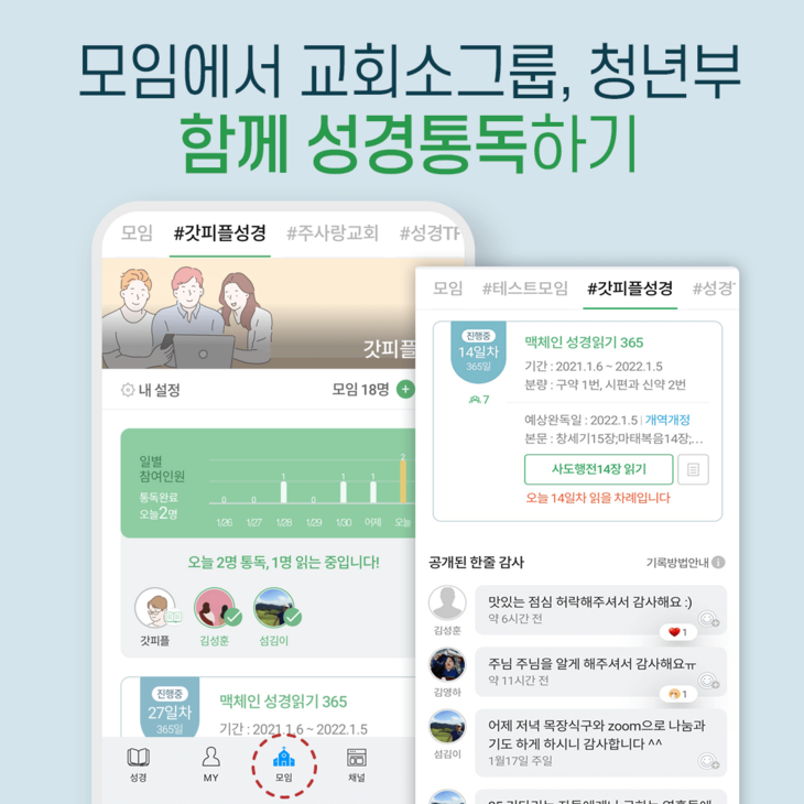 ?공동체와 함께 성경읽기할 수 있는 모임기능!
