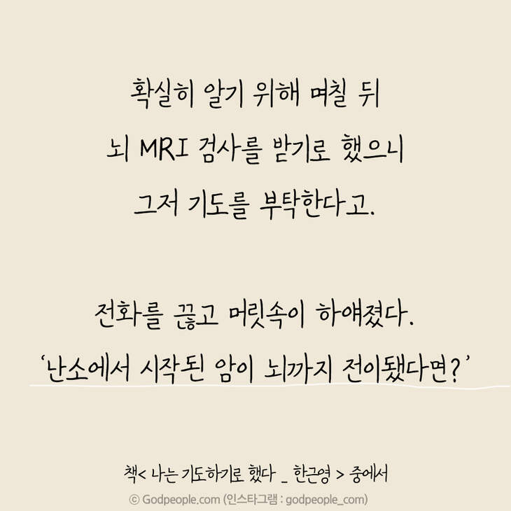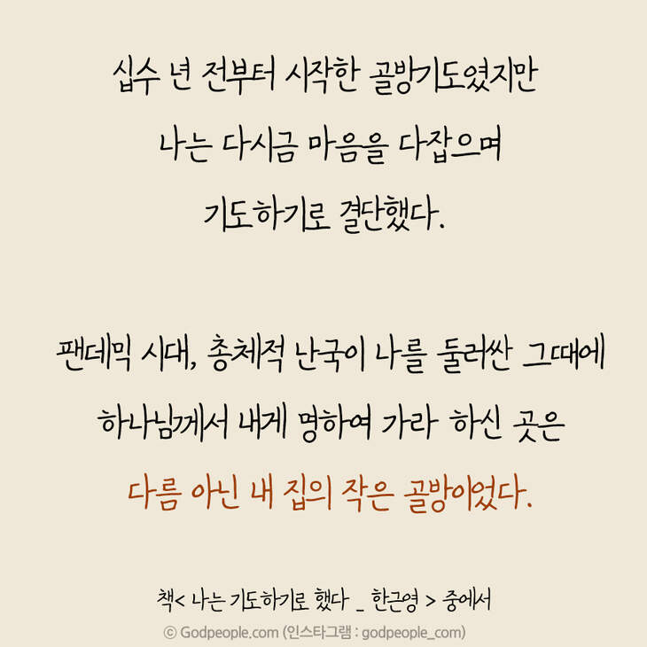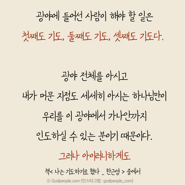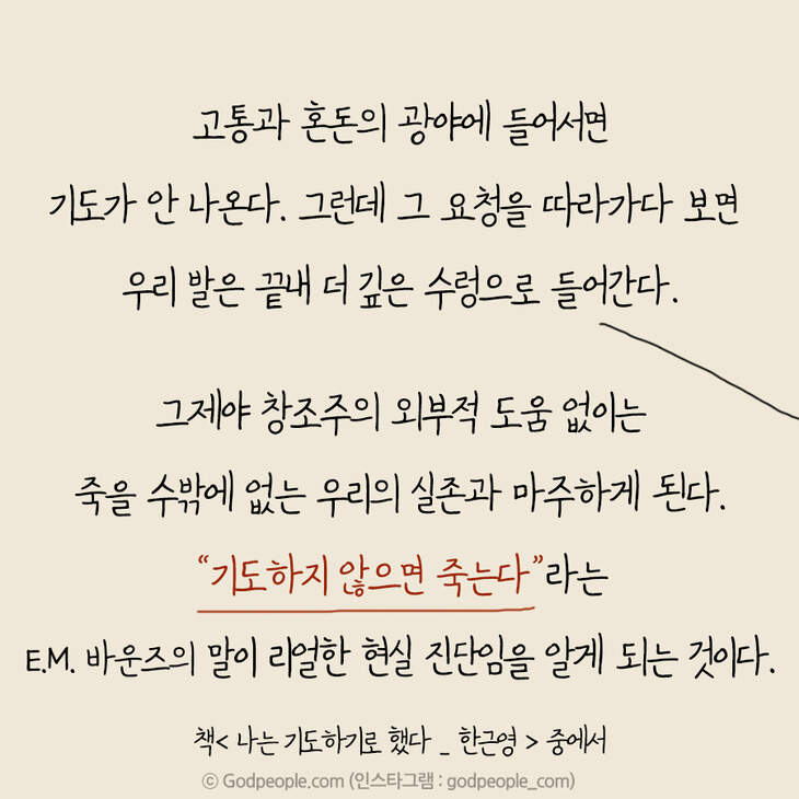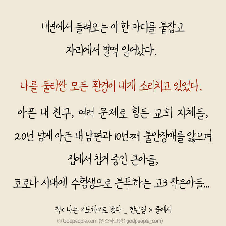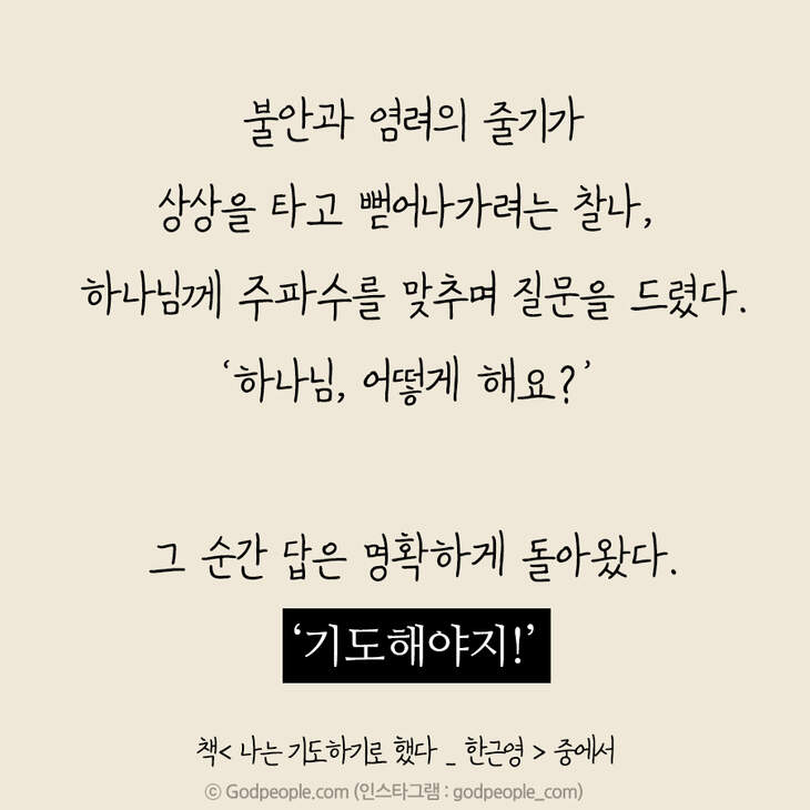 그러나 그때마다 성령께선 제게 끊임없이 외쳐주셨습니다. 그래도 기도해야지, 기도해야지, 기도해야지….