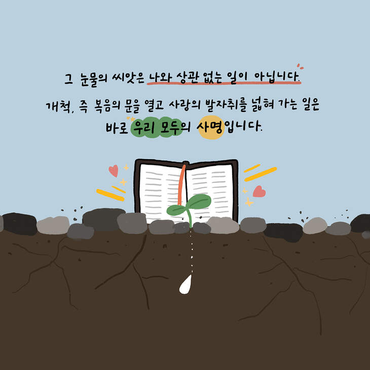 본 작품은 예니의 그림묵상_도예은 @1day_1pray 작가님 께서 재능기부로 섬겨주셨습니다. 감사합니다.