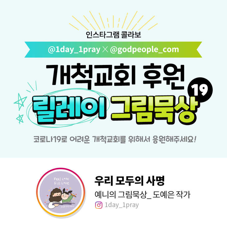 갓피플은 어려운 개척교회 목회자를 돕기 위해 2020년 11월 25일 부터 2021년 8월 3일까지 개척교회 후원 릴레이 그림묵상을 진행하였습니다. 그중 19번째 작품을 다시 나눕니다.
