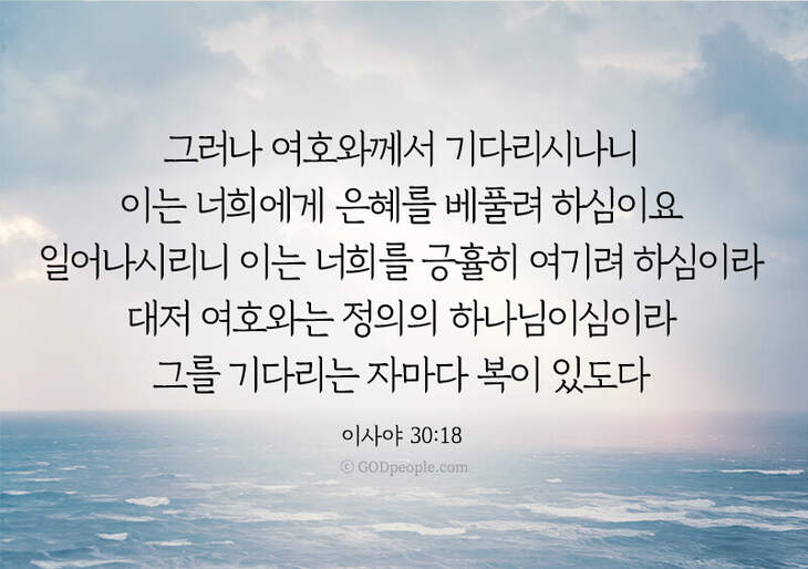 ○그러나 여호와께서 기다리시나니 이는 너희에게 은혜를 베풀려 하심이요 일어나시리니 이는 너희를 긍휼히 여기려 하심이라 대저 여호와는 정의의 하나님이심이라 그를 기다리는 자마다 복이 있도다 – 사30:18