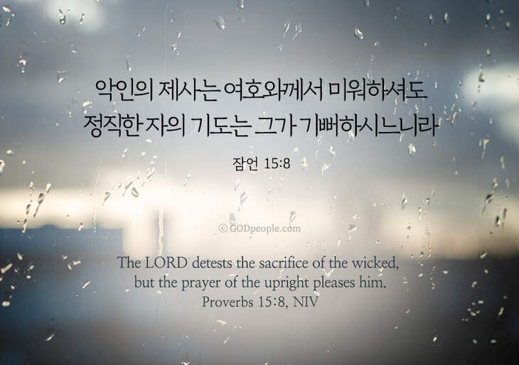 악인의 제사는 여호와께서 미워하셔도 정직한 자의 기도는 그가 기뻐하시느니라 – 잠15:8 The LORD detests the sacrifice of the wicked, but the prayer of the upright pleases him. – Proverbs 15:8, NIV ♥ 교도소 재소자에게 성경책을 보내드립니다. [플로잉전용상품] 재소자에게 성경책 보내기_우리말성경 단본(실버그린)우리말성경 단본 (무색인/무지퍼/페이퍼백/실버그린/DKV2406)두란노 편집부 [플로잉전용상품] 재소자에게 성경책 보내기_큰글로 읽는 우리말 비전성경 중단본(호박색)큰글로 읽는 우리말 비전성경 중단본(색인/무지퍼/PU/호박색/DKV2206)도서출판 두란노두란노 편집부 위 성경책을 구매 (플로잉 Flowing) 하시면 "프리즌 리바이벌 PRISON REVIVAL "을 통해서 국내 교정기관의 담장 안에서 지내시는 분들에게 전달됩니다.♥ 수용자 자녀에게 성경만화, 묵상365를 보내드립니다. [플로잉전용상품] 수용자 자녀에게 성경만화 보내기_만화 예수님의 생애 세트 (전3권)온 가족이 함께 보는 사복음서김동순 [플로잉전용상품] 수용자 자녀에게 성경만화 보내기_[개역개정판] 카툰성경 세트(완간/전3권)그린이 : 키이스 닐리, 데이비드 마일즈 [플로잉전용상품] 갓피플 통해 쌀 보내기_백미 (10kg)오픈스토리 [플로잉전용상품] 맛있는 반찬보내기_김치세트 (유기농백김치+겉절이)참식품주식회사 위 상품 구매 (플로잉 Flowing) 하시면 "세움"을 통해서 수용자(교도소 재소자) 자녀들에게 전달됩니다.+오늘의말씀으로 만들었어요♡ 오늘의말씀 아크릴 자석액자+말씀을 듣고 필사하세요♡ 개역개정 MP3 다운로드 | 태블릿으로 필사 | 종이노트로 필사 좋아요아멘개척교회 돕기 2022-09-05 · 3210 · 127 · 성경전도갓피플갓피플오늘의말씀말씀카드좋은성경구절잠언_잠15:8잠언15장8절오늘의말씀더보기갓피플 오늘의말씀_에스겔36장36절갓피플 오늘의말씀_갈라디아서4장18절갓피플 오늘의말씀_누가복음6장23절