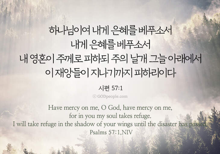 하나님이여 내게 은혜를 베푸소서 내게 은혜를 베푸소서 내 영혼이 주께로 피하되 주의 날개 그늘 아래에서 이 재앙들이 지나기까지 피하리이다 _시편 57:1