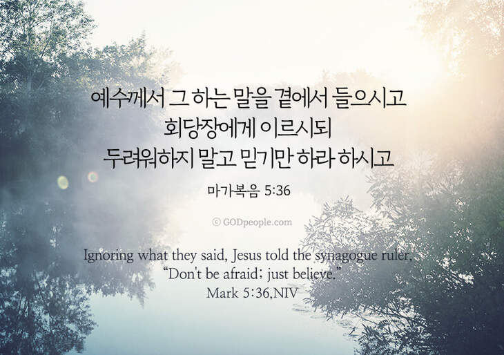 예수께서 그 하는 말을 곁에서 들으시고 회당장에게 이르시되 두려워하지 말고 믿기만 하라 하시고 _마가복음 5:36
