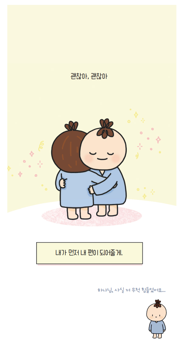 “잠시 멈춰도 돼. 숨을 쉬어도 된다. 숨을 쉬자, 숨을 쉬자, 이렇게 된 것은 내 탓이 아니야. 괜찮아.” 처음으로 스스로에게 위로를 건네주었다. 어제보다 오늘 내가 덜 미워졌다.