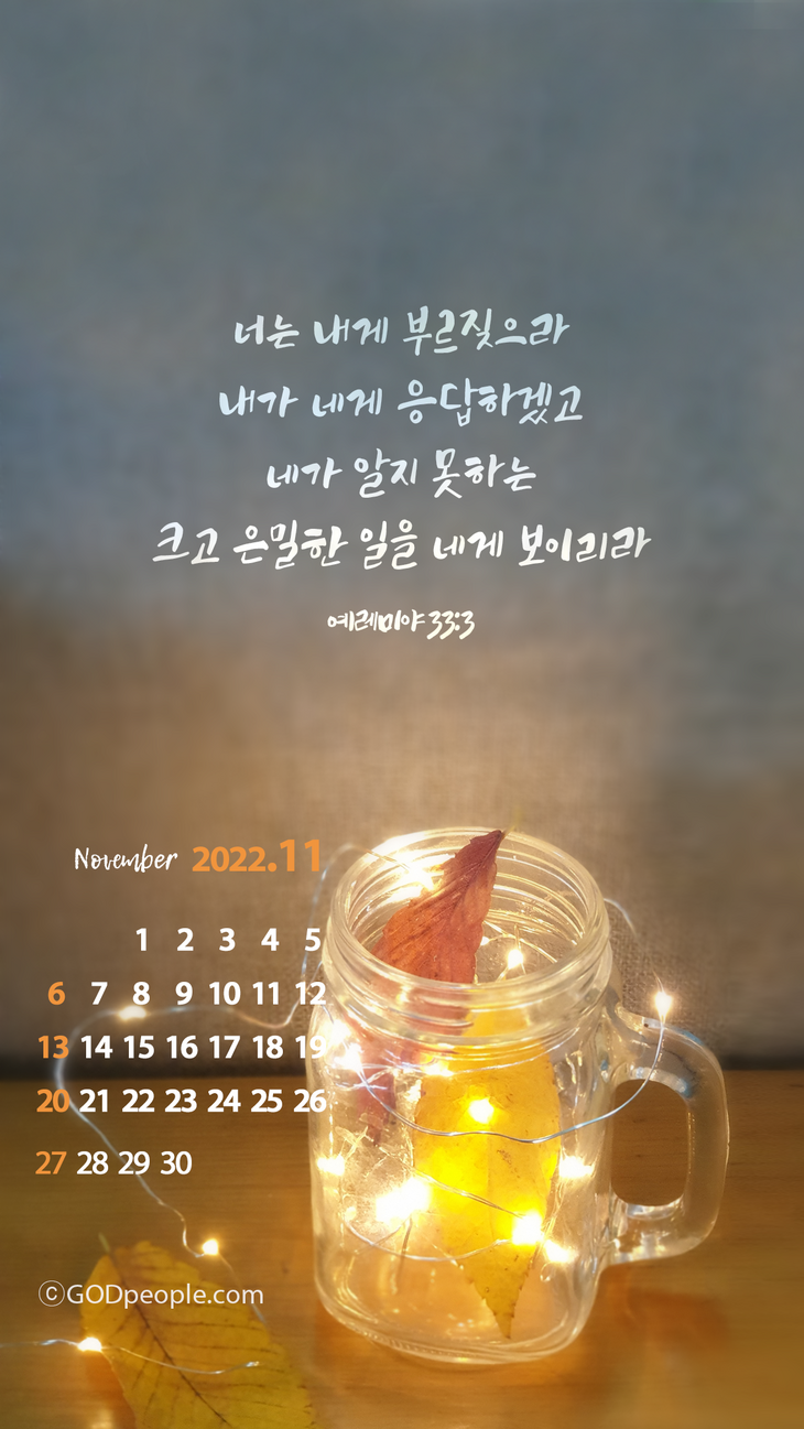 11월에는 개인예배를 시작하시길 축복 드리며, 은혜 풍성한 바탕화면 나눌게요^^