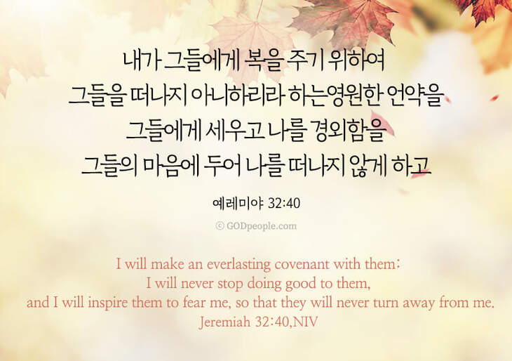 내가 그들에게 복을 주기 위하여 그들을 떠나지 아니하리라 하는 영원한 언약을 그들에게 세우고 나를 경외함을 그들의 마음에 두어 나를 떠나지 않게 하고 _예레미야 32:40
