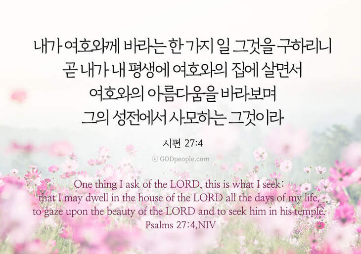 내가 여호와께 바라는 한 가지 일 그것을 구하리니 곧 내가 내 평생에 여호와의 집에 살면서 여호와의 아름다움을 바라보며 그의 성전에서 사모하는 그것이라 _시편 27:4