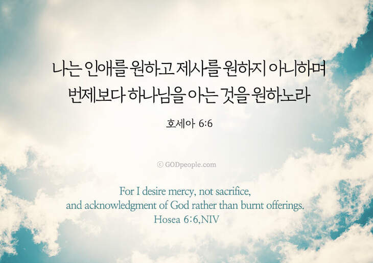 나는 인애를 원하고 제사를 원하지 아니하며 번제보다 하나님을 아는 것을 원하노라 _호세아 6:6