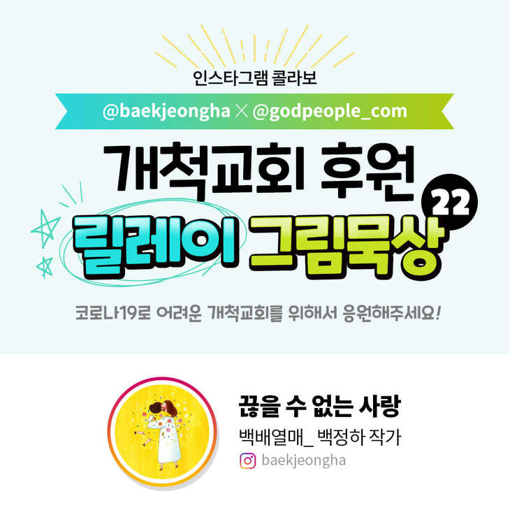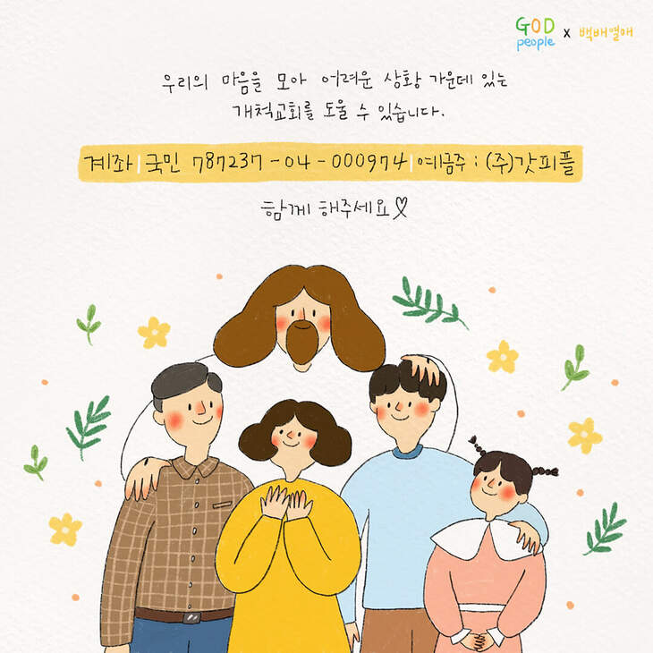 갓피플은 코로나로 어려운 개척교회 목회자를 돕기 위해 2020년 11월 25일 부터 2021년 8월 3일까지 개척교회 후원 릴레이 그림묵상을 진행하였습니다.