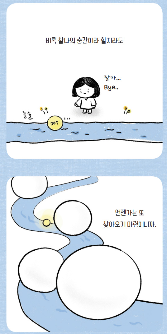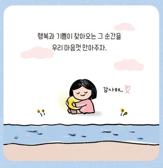 우리에게는 어렵고 힘든 순간도 있지만 행복과 기쁨의 순간도 찾아옵니다. 어려움만 마음에 담고 아파하지 말고, 기쁨이 찾아오는 그 순간을 우리 마음껏 안고 누립시다. 비록 찰나의 한 순간이라 할지라도요…