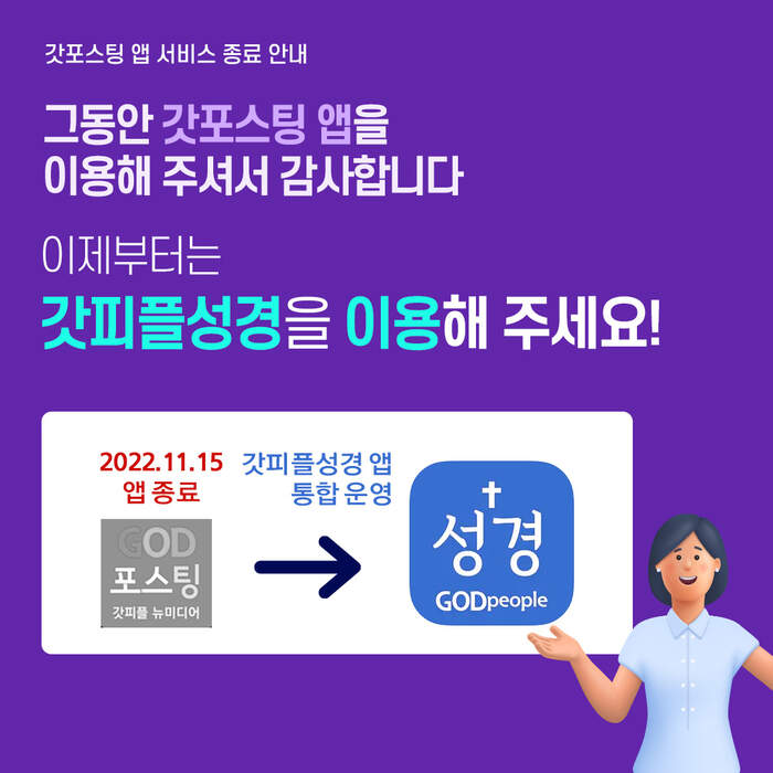 갓포스팅 앱 11월 15일 종료 ▶ 갓피플성경 앱 통합운영 됩니다