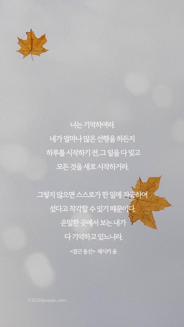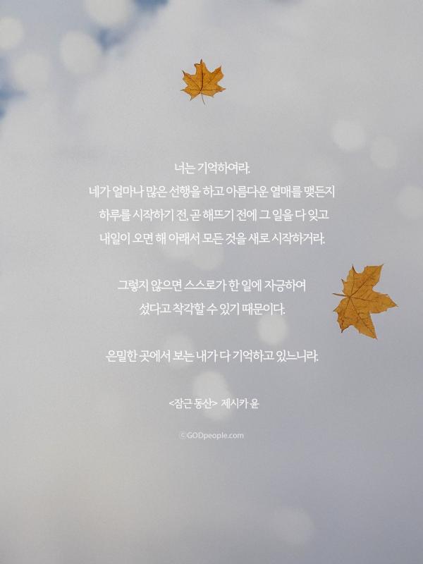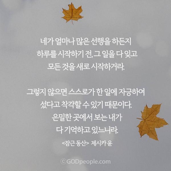 <하나님의 마음> 너의 선행을 잊으라. 그렇지 않으면 스스로가 한 일에 자긍하여 섰다고 착각할 수 있기 때문이다.